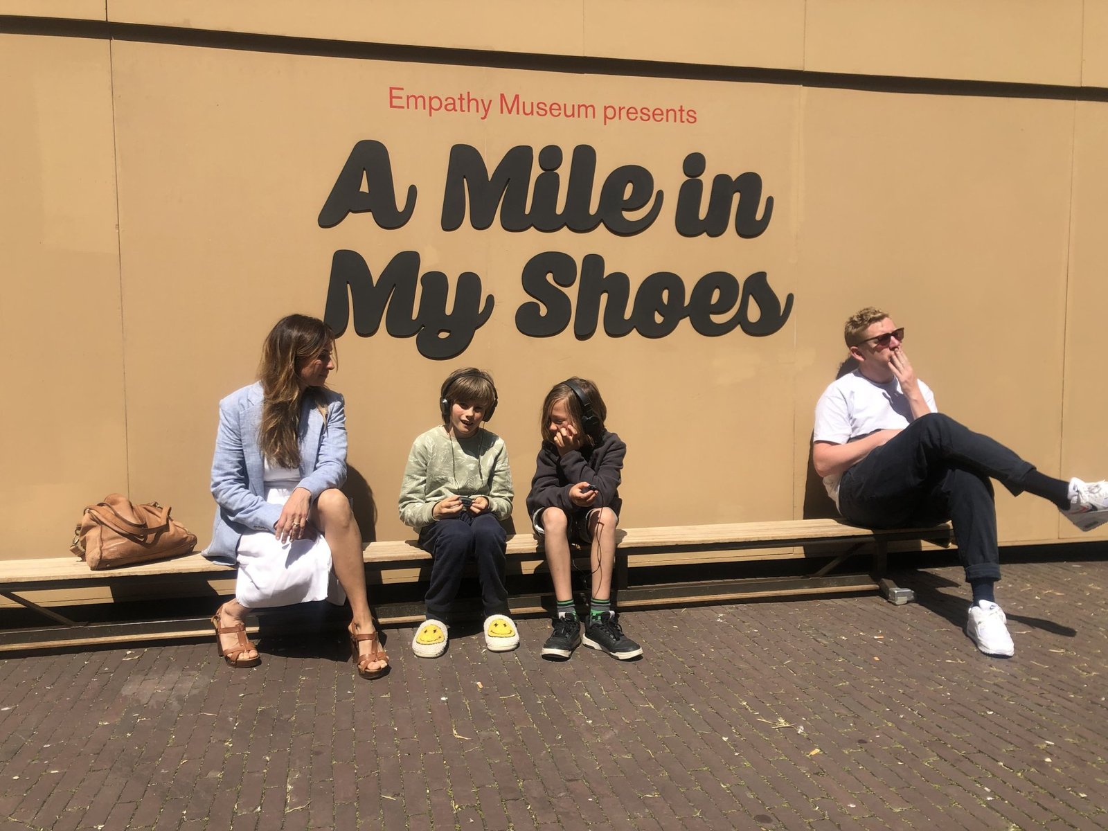 Een enorme schoenendoos streek voor even neer bij het Oorzaken Festival Amsterdam. Je stapt er naar binnen in en krijgt schoenen aan van een onbekende. Terwijl je daarop loopt hoor je het verhaal van de oorspronkelijke eigenaar. Ik maakte samen met Jesse Koolhaas een van de portretten: Dana
