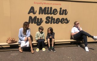 A Mile in my shoes is een internationaal project van the Empathy Museum. Een enorme schoenendoos streek voor even neer bij het Oorzaken festival in Amsterda. Je stapt er naar binnen in en krijgt schoenen aan van een onbekende. Terwijl je daarop loopt hoor je het verhaal van de oorspronkelijke eigenaar. Ik maakte samen met Jesse Koolhaas een van de portretten: Dana